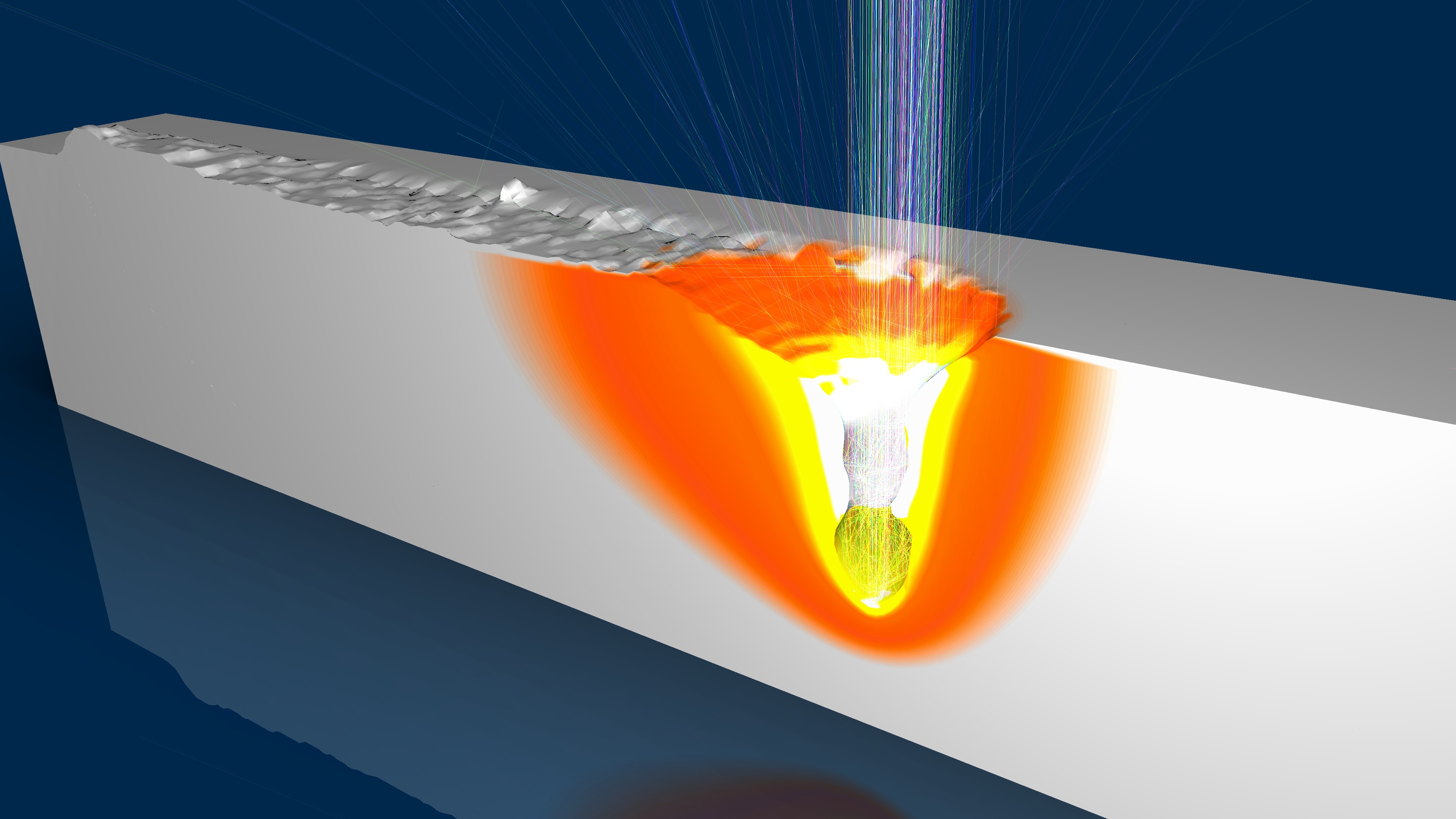 STREAMのレーザービーム溶接は、同種材料の溶接に対応しています。この機能により、溶け込み形状、キーホール挙動、熱影響部(HAZ)を予測できます。レーザー出力、移動速度、ビームサイズ、溶接経路を変更して評価することで、最適な溶接条件を検討できます。計算された溶け込み形状はエクスポートすることができ、構造解析に利用することも可能です。